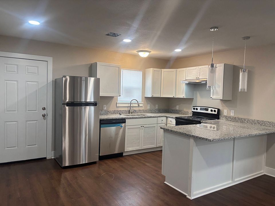 This beautiful duplex offers 3 bedrooms, 2 full bathrooms, and a thoughtfully designed open-concept layout. The kitchen features granite countertops, a peninsula with seating, a pantry, and plenty of cabinet space perfect for cooking and entertaining. The master suite measures approximately 14' x 12' and includes an en-suite bathroom and a generous walk-in closet. Two additional bedrooms provide ample space and come with built-in closet shelving. A large living area gives you room to relax and gather, while washer/dryer hookups and extra storage add convenience. Located just minutes from Friends University and Newman University, this home is ideal for anyone seeking a comfortable, modern space in a convenient location. Owner pays trash. Tenant responsible for all other utilities. No recent evictions.