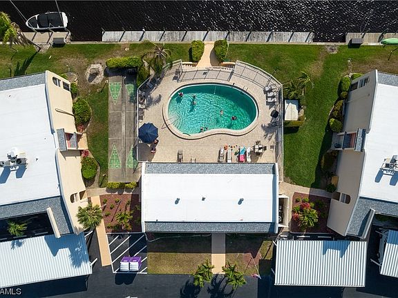 LOCATION! LOCATION! LOCATION! Looking for a 1-story DIRECT Gulf Access Condo, assignable dock, ONLY minutes from the Caloosahatchee River? Well you’re in LUCK-this GEM is a MUST see! You will unwind with the CAPTIVATING water view of 200+’ canal from your kitchen, family room and comfy master suite. Enjoy AMAZING sunsets and views of multi-million-dollar homes across from this home. Why wait?! This LOVELY budget friendly condo has a spacious feel at 1,034 sf, split floor plan, 2 bed, 2 bath, recently remodeled kitchen, tile floors, natural light, fresh interior paint and screened lanai. Boat dock outside unit is currently assignable- no extra cost, or first come, first served bases. Gullwing Condos, a 55+ community is conveniently located close Del Prado Blvd, just off Beach Parkway and only a FEW blocks away from BEAUTIFUL Jaycee Park. You can rent home 4 times yr/90 days minimum with low HOA $475/month that includes water, sewer, cable, exterior pest control, lawn service, irrigation, and insurance. Enjoy community pool, shuffleboard, and other activities at community room. Furnishings are negotiable with exclusions. The Flood insurance is paid thru 11/28/25 and is transferable.