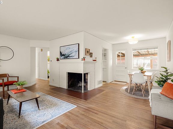 Spring is just about to explode at this Montavilla mid-century charmer on an oversized lot. This move-in ready home features an ideal layout with 3 bedrooms & 1 bathroom on the main level, complete with hardwood floors, fresh interior paint & charming original details. Enjoy the view out the large living room window as the magnolia & dogwood trees begin to bloom. Open living room/dining room floor plan with dual facing fireplace. The partially finished basement with cozy family room fireplace offers additional space to enjoy. The fully fenced large corner lot (0.20 acres!) features RV parking, a covered patio off the dining room for entertaining & a sunny area for your future veggie garden. The oversized attached garage with sub panel is ideal for hobbies. Recent updates include: brand new Rheem heat pump (provides heating and cooling!), light fixtures, interior paint, bathroom vanity with Kohler faucet & decommissioned oil tank. Across the street from Harrison Park & Middle School, this Montavilla gem offers convenient access to transit, freeways, amenities & more. Open House Sunday 3/9 12-2pm. [Home Energy Score = 6. HES Report at https://rpt.greenbuildingregistry.com/hes/OR10234050]