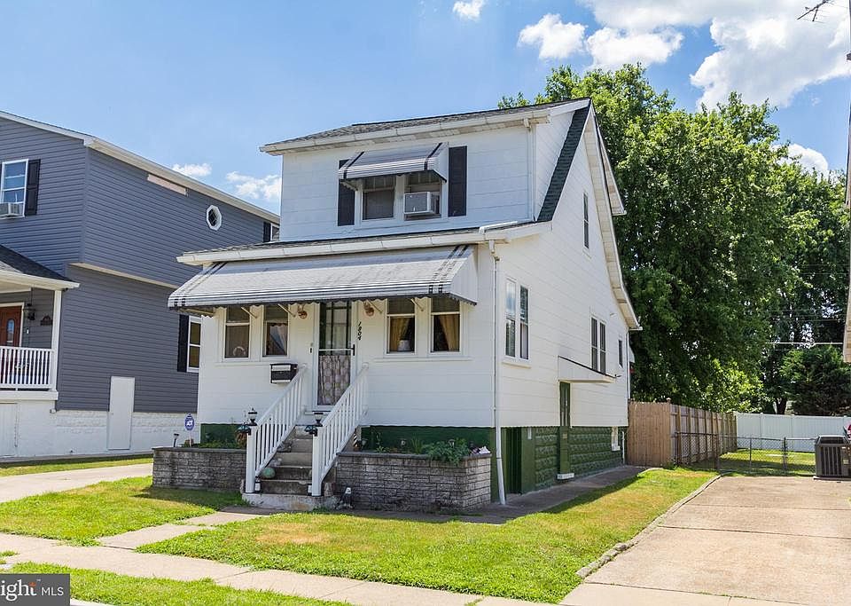 INCREDIBLE OPPORTUNITY TO OWN THIS DETACHED HOME WITH 2 CAR GARAGE FOR UNDER 200K! Main level w/ enclosed porch, spacious LR & separate dining room w/ new laminate floors, large kitchen w/ ample cabinet space, main level half bath, upper level w/ 2 bedrooms & 1 full bath, unfinished basement for storage, large rear yard, & 2 car detached garage! New roof w/ 50 yr. transferable warranty!