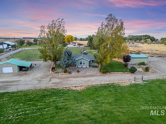 Country Living at its finest. Bring your animals! Well maintained 3 bed, 2 bath on foundation with additions. Private acreage with a view. Mature trees and immaculate landscaping provide a peaceful and quiet place to relax. It is a large enough space to entertain guests with covered patio and fire pit. Heated, 24X30ft Shop, covered RV Storage, Barn, and outbuildings offer plenty of space for storage, projects, or animals. This is a 2-parcel lot with irrigation rights and a building permit for room to grow. A must-see home with much to offer to a new family.