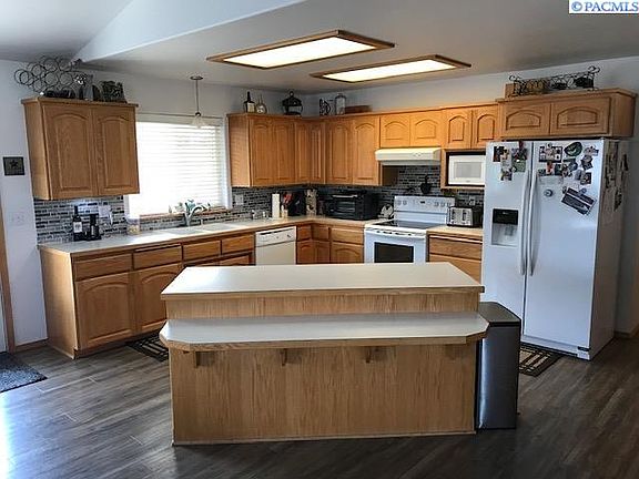 MLS# 272393 front and back, with a covered patio front and back and the well-maintained yard. Attached is a very spacious 2-car garage with additional off-street parking. From theEntryway, you enter the living room area which conveniently passes through to the kitchen and dining area. New flooring throughout the home.Beautiful Oak cabinetry with tile backsplash, kitchen Island and a very large pantry for extra storage capacity. This home features 3 bedrooms, 2 full baths and an open concept kitchen, dining and living room. One of the bedrooms is currently the front office/den area with lots of room for 2 desks or more. Spacious master bedroom with attached full bathroom with shower & tub and a walk-in closet. Laundry room, centrally located, with large second Pantry/Storage area. The hallway has secondary bedrooms, as well as the second full bathroom. The kitchen dining roomarea has a door that leads out to the patio and private peaceful backyard. Pride of ownership is everywhere in this well-maintained andbeautiful home, just waiting for you. Owner of this home is a licensed Real Estate Broker for DK Bain Real Estate.