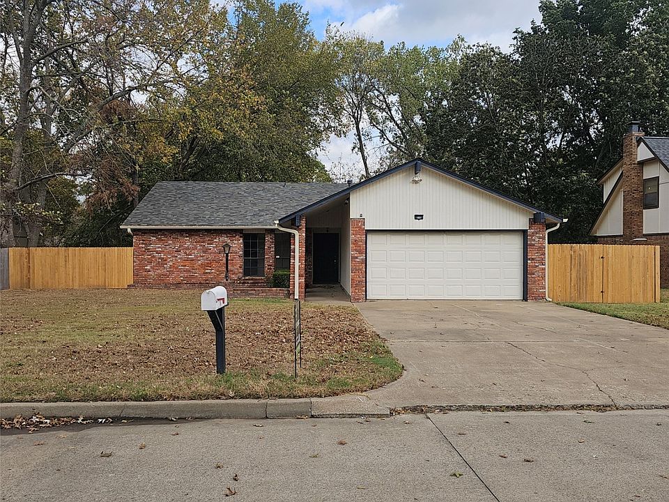FOR SALE! Cozy Home on Quiet Cul-de-Sac in the Heart of Broken Arrow and it backs to Green Space. Large Formal Living with Vaulted Ceilings, Wood Burning Fireplace and Built-in Shelving and Cabinetry. Galley Kitchen and Formal Dining Space with Bay Window. Inside Utility with access to Butler's Pantry. 3 Bedrooms down the Hallway. Master with Private Bath and Walk-in Closet. Both Baths have Tub/Shower. Remaining Bedrooms each have Walk-in Closets. Covered Patio off the Back Door. 2 Car Garage with access to Floored Attic Space. Extra Parking off the Garage and Behind a Gate for your Fishing Boat. Laminate Flooring in the Living, Ceramic Tile in the Kitchen and Dining. Large Front Yard. Large Tiered Back Yard includes ~10' X 10' Shed. Seller has pulled Carpet and will let Buyer choose Color and Style for Replacement. Other updates include in 2024: New Roof, New Gutters, Fresh Coat of Paint on Exterior Eaves and Soffits, Fresh Interior Paint, New Garage Door Opener, New Front Fencing and Gate.