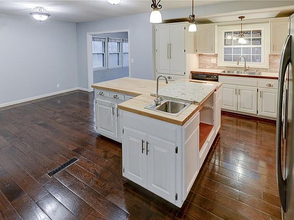 Home built for entertaining and hosting large parties. Gourmet kitchen with 2 pantries, large center island with butcher block that opens into the dining area, sun room and large covered patio. 4 living areas throughout the home with possible mother-in-law apartment in finished basement. Downstairs would be a great spot to host Chief's parties. The owner's suite features a walking closet and private bathroom. Extra storage in the 20' deep shed. New paint, knock down ceilings, patio door and flooring. Exterior features vinyl siding. Half of the garage has been converted into an apartment. It can be converted back.
