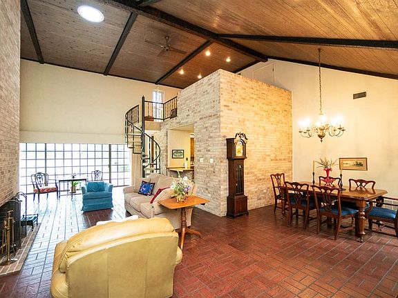What a great 3 bedroom, 2 bath, soft contemporary home this is! Built in 1974 but has an open living, dining and kitchen arrangement that is in demand today and with soaring ceilings and great windows for lots of light to flood in! Awesome brick wall with fireplace and even a double-sided one into the oversized master with sitting space. There are 3 closets in the master suite. There is a 200 sq. ft. loft with spiral stairs that can serve as anything from study, extra bedroom, or play area! Great home!
