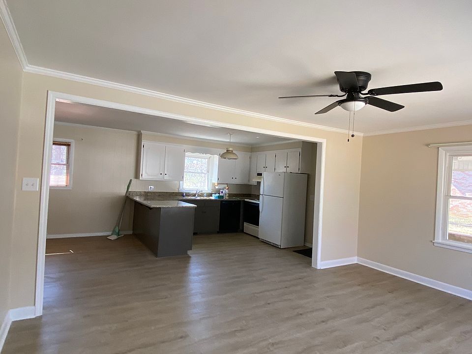 3 bedroom 1.5 bath, new flooring, paint and updated Kitchen and baths. Water and Trash pick up is included in rent. Tenant pays power, gas and mows yard.