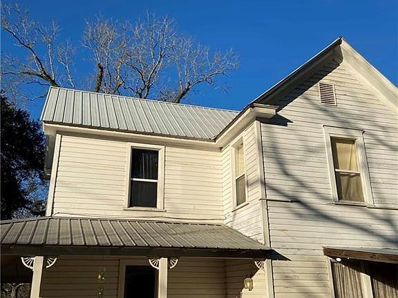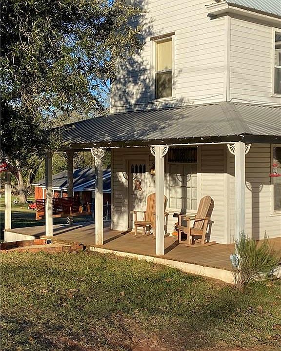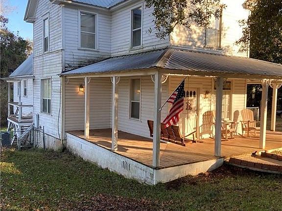 This 5/3, 2852 sqft quaint farmhouse has a beautiful wrap around porch with swing and scenic view. The living room has a unique stained glass window and two glass interior doors. The house also has hardwood floors, updated lighting, 9 foot ceilings, basement, a 15'x28' storage building and metal roof. The house also provides a spacious laundry room with utility sink. The windows have been replaced with double pane windows for better heating and cooling. Also has a fenced in yard on a half acre lot. Call to see this enchanting home today!