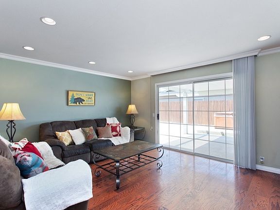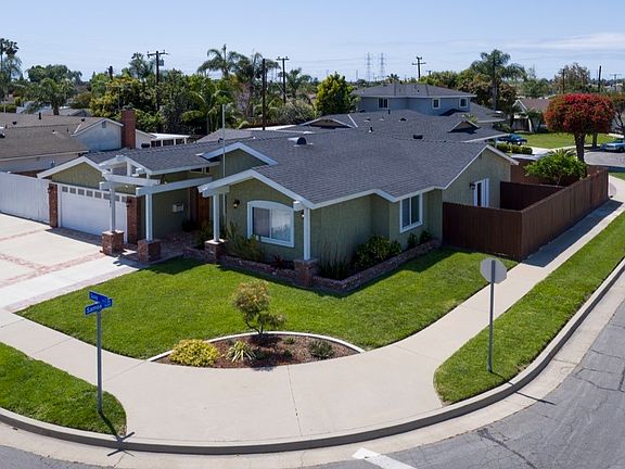 Welcome home to 19041 Suva Lane in Huntington Beach! This beautiful pool home was recently remodeled and expanded; offering 5 bedrooms, 3 bathrooms, an inside laundry room, and 2 car garage, on an oversized corner lot with RV parking. The home features an open floorplan with hardwood flooring, crown molding and plantation shutters throughout. Upon entering you are greeted by a grand foyer leading to a great room layout with family room, dinning room and kitchen. The gourmet kitchen features Quartz countertops, newer cabinetry, top of the line Viking stainless steel appliances and is open to the dinning room. Four secondary bedrooms offer mirrored closet doors, ceiling fans and share two hall bathrooms; one with a porcelain tile shower and bathtub with mosaic detail and a second bathroom with dual sinks, granite countertop vanity, and a porcelain tile shower with a frameless glass shower door.