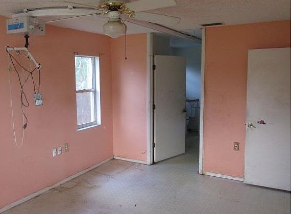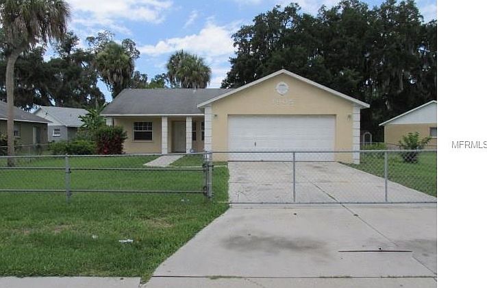 BACK ON MARKET It's project time! This house has great bones but needs a total cosmetic overhaul at minimum. It is priced based on condition & seller is requesting CASH ONLY. Large Great Room plan w/split bedrooms & eat-in kitchen, but the rare item is the 2 car attached garage. It's only 20 years young & has its original roof. This home was built as handicap modified in terms of threshold entry from garage, doorways, Master Bath with roll-in shower and a medical lift in the Master Bedroom. The kitchen is open to the Great Room; there are no appliances and the laundry hook-ups are in the garage. Pie-shaped lot that is fully fenced with chain link and a large screened, covered porch in the back. This property was acquired via foreclosure and as such there are no disclosures and no historical documents. It is the buyer's responsibility to inspect & verify anything & everything that is important to the buying decision including: room sizes, structural & systems integrity, lot lines, schools, HOA, presence of wood-destroying insects or fungi, etc. This is an AS-IS sale with right to inspect. All closings are subject to the recording of the foreclosure deed. Submitted offers must include buyer-signed contract, proof of funds and earnest money check. Seller addenda will be provided for signature with accepted offer.