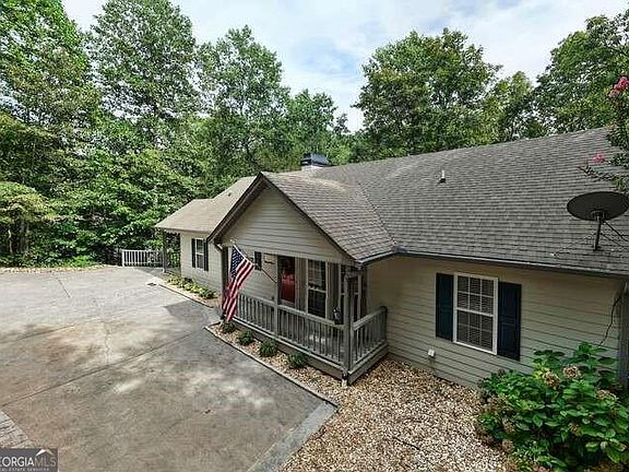 Charming Ranch Home with Creek Frontage and Seasonal Mountain Views!!! Nestled in a serene mountain cleft, this beautiful ranch-style home offers the perfect blend of privacy, natural beauty, and comfort. Enjoy seasonal mountain views and the peaceful sounds of a babbling creek that borders the property. The flat bottomland by the creek is ideal for fishing, family gatherings, cookouts, and creating lifelong memories in the great outdoors. Step inside to find a spacious owner's suite that opens directly to a covered porch-complete with a relaxing hammock to soak in the peace and quiet of the North Georgia Mountains. The open kitchen features a breakfast bar and connects seamlessly to the dining area and family room, which boasts double French doors leading to a covered deck overlooking Bell Creek. The main level also includes two additional bedrooms and a generously sized bathroom. Downstairs, a fully finished basement offers two more large bedrooms, a spacious family room, and plenty of room for a game area or home theater and a full finished bathroom with two large storage areas. Step outside to the covered patio where you'll find a hot tub and outdoor shower-perfect for relaxing after a day in the mountains. Additional features include: Fire pit area for cozy nights under the stars Wrap-around double-deck porches for extended outdoor living Paved road and driveway access Located in the highly desirable Bell Creek area Close to downtown Hiawassee, Lake Chatuge, Hayesville, and Murphy, NC, Ga Mountain Fairgrounds, PickleBall Courts and public beach area. Don't miss this opportunity to own your own piece of mountain paradise. Schedule your showing today!