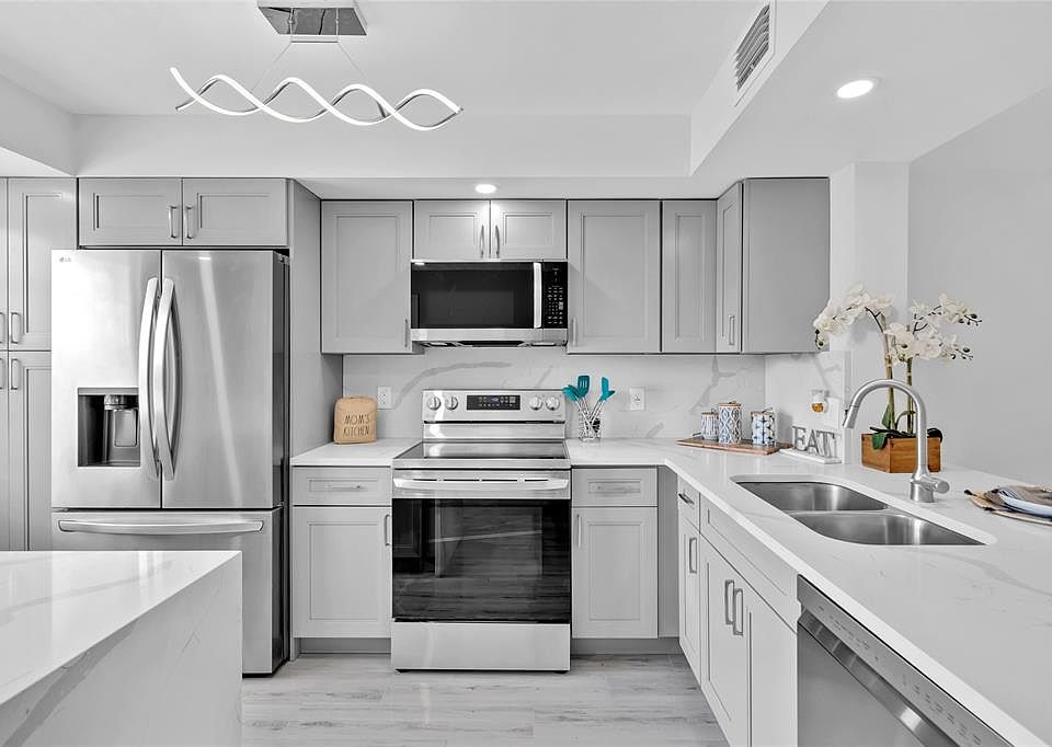 NEW REDUCED PRICE....SPECTACULAR CORNER COMPLETELY RENOVATED. BRAND NEW KITCHEN CABINETS WOTH QUARTZ COUNTER TOPS + STAINLESS STEEL APPLIANCES. PORCELAIN FLOORS THROUGH-OUT. REMODELED BATHROOMS WITH NEW VANITIES + SHOWERS + MIRRORS + TOILETS. EXTRA HIGH HATS LIGHTING IN ALL THE CEILINGS IN LIVING AREA + BATHROOMS. PANORAMIC LAKE/FOUNTAIN VIEW FROM BALCONY. NEWER A/C (2022). COME SEE THIS JEWEL!. WYNMOOR IS KNOWN AS HAVING WODERFUL AMENITIES AS: THEATER, GYM, GOLG, TENNIS COURTS, PICKLE BALL COURTS, BUSES, LIBRARY, CLUBHOUSE AND MUCH MORE. ASSOC REQUIRES 20% DOWN & 1 OCCUP 55+ VACANT/CLICK ON SHOWING ASSIST