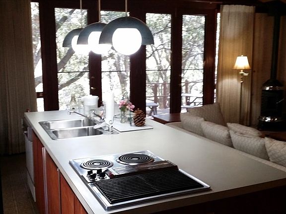 Want to get away from all the city noises? Want a quiet, private little cabin nestled in the pines and oaks? Want a place to relax and enjoy the cool mountain air? Don't wait another minute! This cute little cabin with only 528 sq. ft. is the perfect hide-away. You'll find a cozy great room with a wall fireplace and a pellet stove and plenty of windows for enjoying the tree filled views. The island kitchen has double sinks, a dishwasher, an electric stove top and a small refrigerator. There is a full bath and two nooks each holding a single bed. You'll also find a spacious back deck perfect for evening gatherings. There is a paved driveway with ample parking leading to this special move-in ready gem. Don't wait! Better hurry! Come take a look! You'll like what you see!