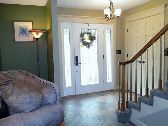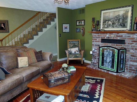 Everyone will feel at home as you entertain in this lovely 4 BR, 2.5 bath, 1+ story home. Sitting on a .67 acre lot on a quiet dead end street this home has great curb appeal with its extensive landscaping front and back. Walk through the craftsman style front door into the foyer with grand staircase; a formal living room welcomes you. Streams of sunlight beacon you into the den with its wall of windows overlooking the large deck and manicured back yard. Warm yourself by the fire of the high efficiency wood burning insert (installed 2013). The spacious eat-in kitchen was completely renovated with new everything. A main level two-car garage, laundry and master bedroom puts everything you need on one level. Upstairs are two big bedrooms with ample closet space (one walk-in closet measures