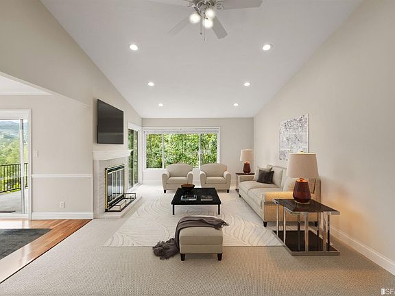 Exceptional upper level condominium with splendid verdant views and desirable Tahoe 1 floor plan. The large living room has a cozy fireplace and both the living and dining areas open to a charming deck for enjoying views and dining al fresco. The attractive kitchen will delight the home cook. Spacious primary bedroom has abundant closet space and an en-suite bath. The second bedroom is also roomy and the refined second bath, laundry room and hall cabinets provide additional storage and ease of living. The bright den is a great home office or hobby room. One car garage parking. (Photos showing furnishings are virtually staged.)
