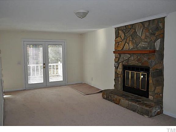 CHARMING Cape Cod in a great location! New Carpet and paint thru out. Move-in ready! Beautiful stone fireplace in lrg family rm. Bright & spacious kitchen w/island & new appliances. Master BR down. Huge deck -great for entertaining. Lrg storage shed. Beautiful wooded cul-de-sac lot in established subdivision with easy access to Hwy 70 & Hwy 42 and minutes to White Oak & shopping!