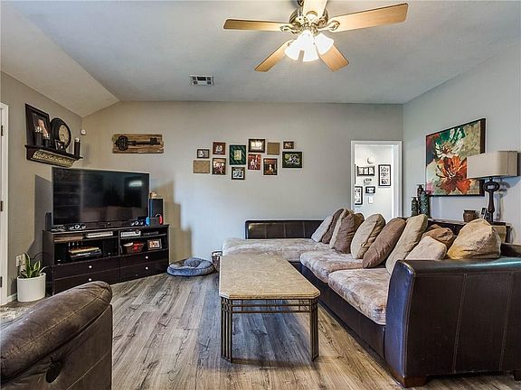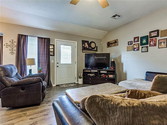 You are going to LOVE this one! So cute with lots of updates! Beautiful Pergo wood floors and newer carpet throughout. All new interior and exterior doors. The Kitchen has updated cabinets, counter tops, backsplash, appliances and includes a pantry and breakfast bar. Master has an ensuite bath with double vanities and 2 walk in closets. Fully fenced back yard and all of this in a fantastic location with quick commute to Tinker and close to all the amenities that Choctaw has to offer!