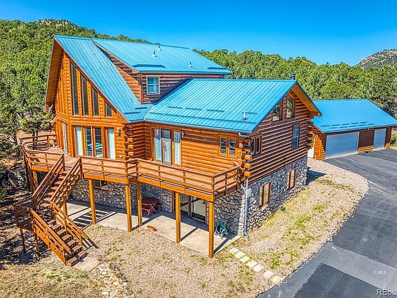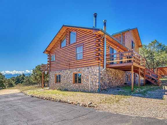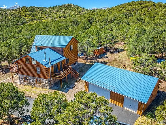 Spacious and well maintained home nestled in the pine trees with lovely Sangre De Cristo mountain views! Great location with year round access and only 15 minutes from Westcliffe. Mostly level terrain provides plenty of room to adventure and explore. Welcome inside to a spacious, open kitchen and dining room with vaulted ceiling, hardwood floors and a cozy, wood burning stove. Plenty of space here to gather and entertain family and friends. Generous cabinet space and large center island with extra storage. The family room features vaulted tongue and groove ceilings, a stunning 2-story stone fireplace, large windows to take in the mountain views, and access to decks. Two bedrooms and a full bathroom complete the main level. Upstairs is a comfortable primary bedroom retreat with ensuite bathroom and loft space for a cozy reading nook. Plenty of extra room for everyone in the finished basement that includes a spacious family room, game room with pool table, 4th bedroom, 3/4 bathroom, and an office. An oversized 3 car garage with workshop space is perfect for storing your ATV/UTV and other vehicles. An exceptional mountain retreat.