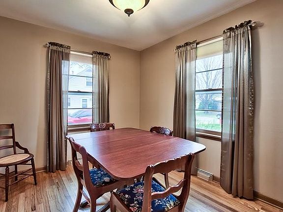 Meticulously cared for home that has updates galore! Hardwood floors located throughout the main level. The kitchen was updated recently with new counters, new appliances & customized cabinetry. There are 2 dining areas, a formal dining room & a eat-in area in the kitchen. The 2 upstairs bedrooms are oversized & have their own half bathroom. Lower level is almost completely finished and has a conforming egress window, making a possibility of a 4th bedroom VERY easy! This home has TWO gas stoves that serve as alternate heat sources & add esthetic value. The original patio has been converted to a 4 seasons porch that has its own heat & air. The one stall attached garage has ample storage space & if you need more, there is a two stall DETACHED garage! The size, the updates & the garage space is a tough find in this price range & in this area. A must see, schedule your private showing today!