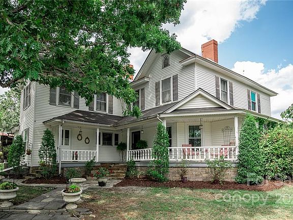 Formerly the Malcom G. Lentz home, this historic 2700 sq ft farmhouse sits on a hilltop overlooking 10 beautiful rolling acres and is one of the most substantial early 20th century homes still standing in Cabarrus County. The circular drive and Rocking chair front porch will invite you back in time. With 5 bedrooms, two baths, a grand living room, office space, kitchen with breakfast area and a laundry/mud room, there is plenty of space inside. The home has some hardwood flooring, beadboard ceilings, shiplap walls and a large picture window. Outside you'll find beautiful landscaping and old trees, the historic buildings/sheds that still remain on the property are the carriage house,chicken house & outhouse, Spring house, kitchen and the old cream room along with a 2 level barn. The wood shed is great for storing equipment and has a nice seating area to enjoy the outdoors. The large paddock area includes 8 stalls (6 on the inside/2 on the outside) that open into the fenced pastured area