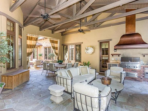 Impressive builder owner home w/ fantastic features & upgrades.This gorgeous home is located in a prestigious neighborhood w/ arguably the best lot. You will be immediately impressed upon entering the wrought iron gate to the courtyard & fountain. Once inside you will feel right at home.Warm colors, hard wood & terrazzo tile floors, custom trimmed windows, baseboards, beams and doors. Custom painted kitchen cabinets, Venetian plaster walls in master, granite counters, designer fixtures & window treatments. The latest in Crestron home automation w/ a touchscreen panel to control lights, fireplace, music, & security cameras.Double French doors lead outside to the most magnificent covered patio.The space feels like a second great room w/ vaulted ceiling & exposed beams.The perfect spot for relaxing w/ a glass of wine at the end of the day, or entertaining w/ friends & family. You are sure to enjoy the cozy fireplace, television, seating area,and built in BBQ.BTV bed & bath count.