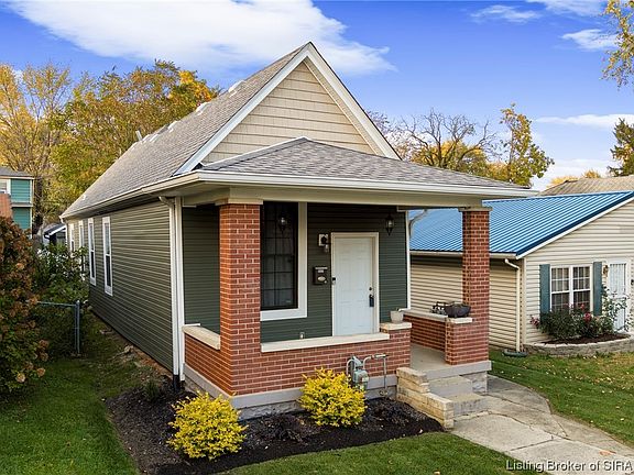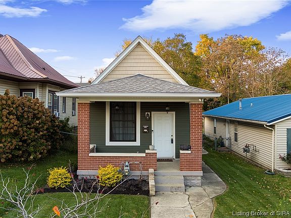Absolutely darling place to call home in the heart of New Albany. Literally minutes from downtown. This home has been totally renovated with new windows, paint, flooring, appliances, countertops, cabinetry. Moveable kitchen Island for your cooking convenience. the new vinyl privacy fence looks to a quaint backyard with 2 car detached garage and off street parking. Garage has new tin roof. 10 ft ceiling in home add to spacious feel.