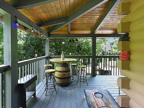 Introducing Ryes and Shine Cabin, your perfect turnkey short-term rental investment nestled in the serene beauty of the Smoky Mountains. Located within the prestigious Eagle Springs resort in Sevierville, Tennessee, this cabin offers a plethora of amenities and attractions for your guests to enjoy. Step inside to discover two cozy bedrooms downstairs, each adorned with inviting queen beds and tasteful decor. One bedroom boasts a private bathroom, while the other shares a well-appointed common bathroom. The kitchen is equipped with all-new appliances as of 2023, ensuring your guests have everything they need for a comfortable stay. Upstairs, the loft area overlooks the spacious living room, featuring two additional queen size beds, a pool table, barrel arcade game, and a Nerf gun wall, perfect for keeping children entertained during their vacation stays. The cabin's decor is inspired by whiskey and moonshine themes, with custom barrel furniture crafted by artisans from across the country. The dining area showcases a stunning custom-made live edge epoxy table in black and brown, adding to the rustic charm. Outside, custom branded swing chairs welcome guests on the front porch, while a high-end hot tub, installed just two years ago, beckons relaxation with stereo, multiple jets, and changeable lighting. The entire property is illuminated by landscape lighting, creating a magical ambiance, complemented by imitation fire lighting that encircles the porch area. For outdoor cooking enthusiasts, a charcoal and gas grill are conveniently located on the property. With a gross income of $115,000 in 2023, this cabin promises exceptional rental potential. Financials are available upon request for serious buyers, and the existing property manager is eager to continue managing the property, offering a seamless investment opportunity. Owned by a licensed realtor in Florida, this property is not listed with a realtor, and the owner is not considering creative or owner financing options. Don't miss your chance to own this spectacular short-term rental gem in the Smoky Mountains – schedule your viewing today!