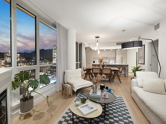 Experience luxury in this beautifully designed corner unit in Lower Lonsdale. With breathtaking views of the city, water, and mountains, this reimagined home combines sophistication and comfort. High-end finishes include Fisher & Paykel appliances and Bradford Hardware, showcasing meticulous craftsmanship. The open floor plan is flooded with natural light, ideal for both entertaining and daily living. The gourmet kitchen flows seamlessly into the living area, creating an inviting space. Featuring two spacious bedrooms and two elegant bathrooms, plus air conditioning for year-round comfort. Enjoy exclusive access to Pinnacle Hotel amenities—pool, gym, steam room, and sauna. A rare gem in an amazing neighbourhood!
