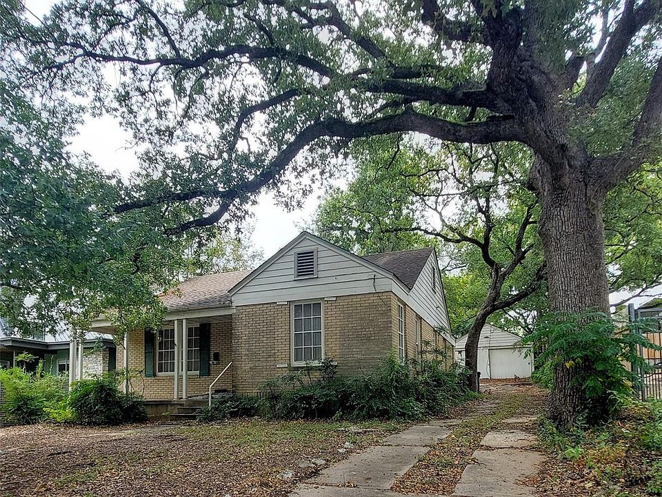 Home sold As-Is. Lovely neighborhood with gorgeous trees in a very sought after area of Austin. This quaint home could be a rehab project or tear down and rebuild. It features two bedrooms with a second add on living area which could be used as a third bedroom. The front living room has a cozy wood burning fireplace with builtin cabinets. The nice sized dining room has a wall of built in cabinets providing lots of storage. A detached two car garage is at the back of the lot. The back flex room is a nicely windowed area with a second bath room connected. Many homes on the street have been remodeled. Others are recently built custom homes or homes that have had add on spaces. The location is fantastic, the opportunity to create your special place in a great community is priceless.