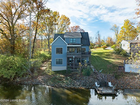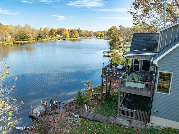 LAKEFRONT !! ABSOLUTELY STUNNING !! Like new 1 1/2 Story 3 Bedroom home with one of the prettiest settings in this area !! Beautiful open Great Room / Kitchen / Dining Area with huge windows looking out over gorgeous Crystal Lake. Kitchen has Granite Countertops, beautiful cabinetry and all Samsung appliances (Remaining). From this area you can step out onto the expansive first floor deck and take in that fantastic lake view. First Floor Primary Bedroom has a private bath with shower , more big windows with the lake view and it's own deck access door. A Half bath and Laundry Room round out the main Level. Upstairs there is a Loft - perfect for a computer area , a large 2nd Bedroom with a private full bath and a SAUNA ROOM !! More large windows show that lake view !! The lower level boasts a large Family Room with a Pellet Stove, more big windows and an extra living area for use as desired. A large third bedroom includes it's own large windows with the lake view. There is a 1/2 bath on this level. An unfinished area for storage is included and, in this area is a terrific BONUS - A STORM SHELTER !! Also, there is another deck that you acess from this lower level that walks down to your private DOCK and a handy tool shed!! All this only 2 minutes from I-71 and within easy walking distance to Kroger, Restaurants, and more Shopping !! Gorgeous Property, Tremendous Location !!