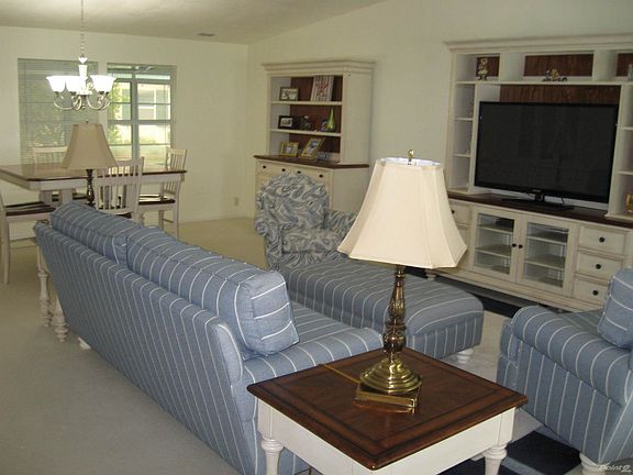 This is a gated 55+ community on lot leased land. 20% of the residents can be 40 years old and up. OVER 1800 SQUARE FEET! This beautiful triple-wide home features three bedrooms, two baths, tape and texture walls, formal dining room (with built-in lighted hutch) and large laundry room which includes washer and dryer and extra large storage closet. The master bedroom sports an extra…extra- large walk-in closet and a master bath with his and her sinks, walk-in shower and an abundance of cabinets and drawers. The Florida room measures 20’ x 14’, has heat and air, and vinyl windows. But, let me tell you about the eat-in kitchen which is GORGEOUS with beautiful tiled floors, lovely countertops, great appliances and loads of cabinets. The extra wide deco drive with brick pillars leads to 11.5' X 13.5' which includes a golf cart and charger. This great home is just waiting for you to add your finishing touches to make it your own! Did I mention the heat and air are only a year old? #MoveInReady #ForSale #HouseHunting #HomeSale #HomesForSale #Home #Housing #Listing #EmptyNest #Renovated #JustListed #WantToMove #ILiveToGolf #GolfCartIncluded #TennisPlayer #HomeUnder100K #RetireToFlorida #ActiveRetirement #SoMuchToDo #LiveInTheSunshine #AffordableFloridaLiving #FloridaLifestyle #SellTheSnowblower #Broker #ReneesResales