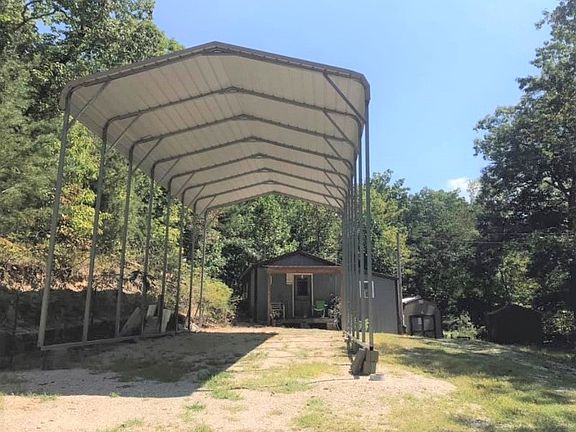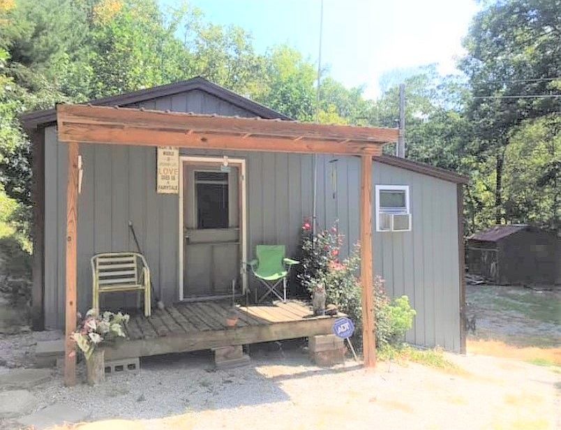 Nice cabin sitting on slab. one large bedroom. Open floor plan for kitchen and living room. County water shared with neighbor in back and neighbor responsible for water bill. 2 20 amp electric service, tankless water heater under sink. 1000 gallon septic tank and laterall in good condition. 18x36 carport 13 ft high. Has camper hook up.