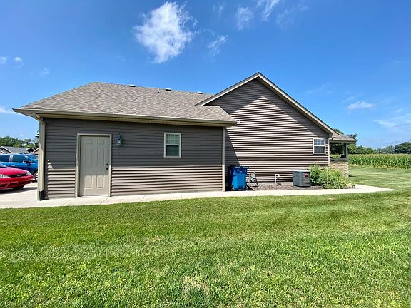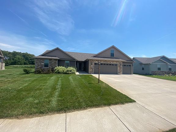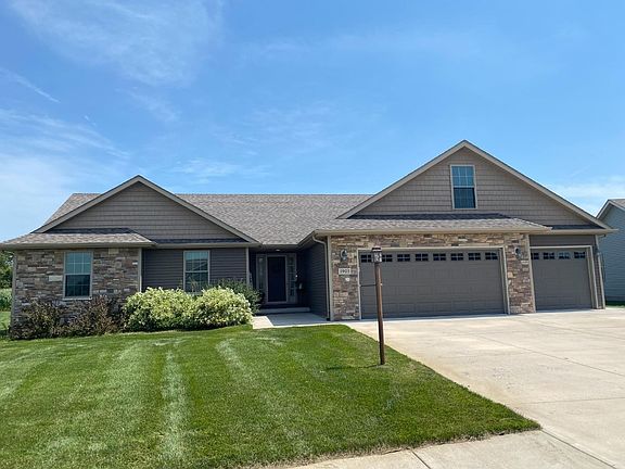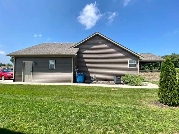 This 5 year old sprawling ranch with additional bonus room features 3 bedrooms, 3 full baths, covered back porch and additional patio with 7 person hot tub. Open concept kitchen/dining room with granite countertops and tons of storage in the many cabinets throughout, stainless steel appliances stay, the large 4 person island/bar is great for entertaining. Bonus room features private bath and closet. Extra storage space located in the attic on the upper level. Arborvitaes line the property for seclusion irrigation system professionally installed.