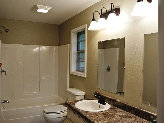 Remodeled 3 bedroom, 2 bath home. Large open kitchen. New, updated bathroom, laminate and tile flooring through entire home. Nice yard with extra concrete pad for parking. Home is outside city limits.