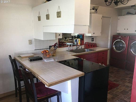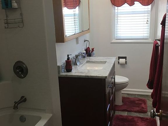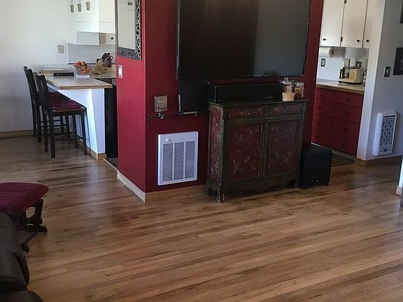 Absolutely adorable house and yard and patio! refinished hardwood floors, vaulted ceilings! Brick wood fireplace. Open kitchen. Bathroom all updated! Tiled driveway and back patio. Hot tub included. 16x 12 shed shop. 220 heater in garage.