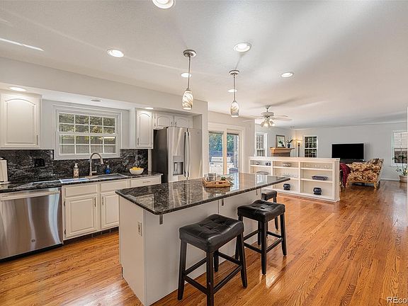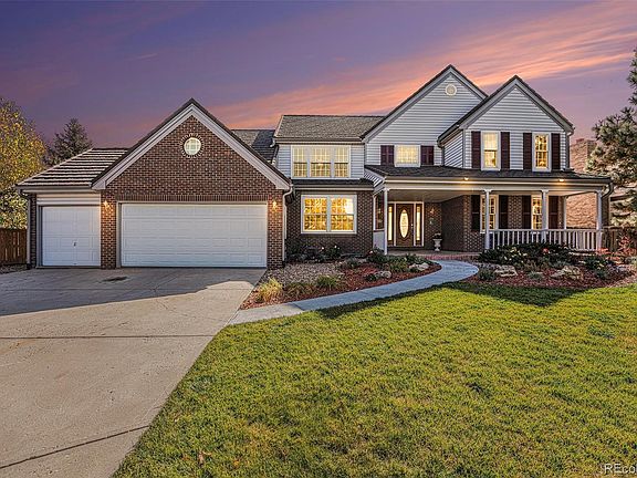 Gorgeous, stately, beautifully updated Sanford two story on spacious lot! This spacious home is great for entertaining, with a main floor featuring hardwood floors, a formal living room, completely separate formal dining room with butler's pantry, and a large family room with a cozy brick-hearth gas fireplace. The updated kitchen has fresh white cabinets, rare "Brass Blue" granite countertops, brand new stainless appliances and a lovely breakfast nook. The main floor bedroom overlooks the back yard, and works equally well as a sleeping space or as a den. Beautifully updated with new carpet and new paint throughout. Upstairs, three very spacious bedrooms, including a large primary bedroom with an updated, spacious primary bath. The second full bath opens to the hall and also to the second bedroom. And in the back, your own private resort! The back yard is large and beautifully landscaped, with a patio, koi pond, fenced raised bed for gardening, ample perennial flowers, and plenty of room for play! The windows are newer, as is the stone coated steel roof. And on roof, the 100% seller owned solar power system means low, low utility bills with NO leases or ongoing payments. The unfinished basement offers plenty of space to use in whatever way works best for you. Perfectly located just a short walk to the neighborhood pool, in the heart of Highlands Ranch, with access to all four award-winning recreation and fitness centers, pools, parks and trails. An easy drive to C-470 offers great access to the mountains to the west, and the Denver Tech Center and the restaurants and shops of Park Meadows to the east, and downtown to the north. A terrific property in a terrific location at a terrific price!