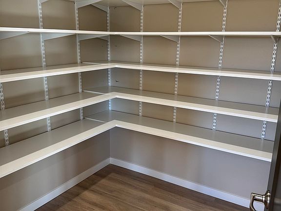 Spacious backyardLarge family roomSleek monoslope roof designKitchen and dining areaOversized pantryQuartzite countertops