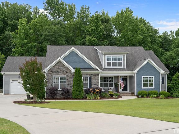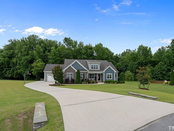 Custom built, ranch home, 1.55-acre cul de sac tree lined lot, engineered wood flrs, formal dining, family room w/fireplace, custom built-ins, open to an eat-in kitchen w/ large island, SS appl & granite. Enjoy a 1st flr owners BR w/tray ceiling & en suite BA, 3 additional 1st flr BR & 2 full BA. 2nd flr private bonus w/ walk-in storage (plumbing for 4th BA), screened porch, fence, 3 car garages & tons of outdoor space for entertaining. Walk to comm pool & Fleming Loop Park. Convenient to downtown Fuquay
