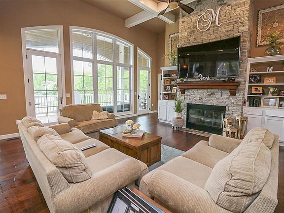 Beautiful custom built lakefront home on Lake Shayne in Terre Du Lac. Home features 5 bedrooms and 3 1/2 bathrooms. Main floor features master suite, trey ceilings, separate dining room, gas fireplace in family room and much more. Lower level features a large family room, a full kitchen and two bedrooms.