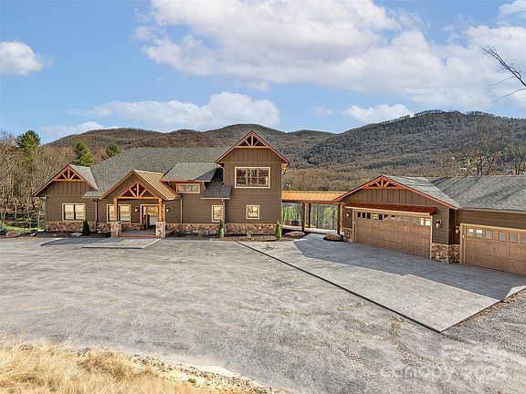 Perched on nearly 13 unrestricted acres just moments from Historic Main St Waynesville this extraordinary work of art was completed in Fall '23. Only the highest quality materials & expert level craftsmen retained to curate this dream home. Nearly every room boasts a view of the Blue Ridge Mountains. As you walk in the main floor you are immediately drawn outside to your covered outdoor living area overlooking the mountains & rolling pastures. Main floor includes expansive primary suite, laundry, kitchen/living area combination & formal dining. Upstairs is a loft, 2 more bedrooms and a Jack & Jill bath. The basement offers 2500+ of unfinished space. Expansive 2 car detached garage with portico.