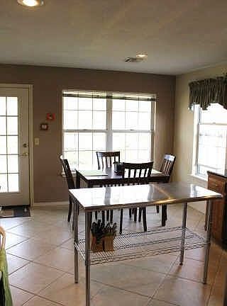 Cheery open floor plan! Granite kitchen countertops, tile floors. Utility room w/sink and pantry. New carpet in living room, hall and one bedroom. Greatroom w/fireplace, pan ceiling. Saferoom in garage.