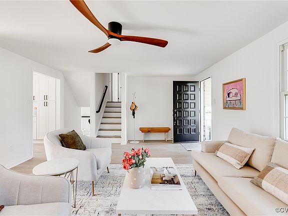 Enjoy the perfect blend of modern style and tranquility in this completely updated Henrico home. Contemporary and functional, this cute tri-level house is ideal for those seeking a move-in ready property with a touch of charm. The exterior welcomes with an inviting covered front porch and plantation shutters. Enter inside to a big, open-concept living and dining area, where new durable LPV flooring flows throughout the main level and all living spaces and bedrooms. The remodeled kitchen showcases white Shaker cabinets, chic quartz countertops, and stainless steel appliances. A breakfast bar provides casual seating, perfect for entertaining or quick meals. Sliding doors from the dining area lead to a spacious deck, extending your living space outdoors. Enjoy grilling and relaxation while overlooking the large, flat, fenced backyard. Two sheds offer ample storage for tools and equipment. The home’s lower level features a family room with a floor-to-ceiling brick wood-burning fireplace, creating a warm and cozy gathering space. This level also includes a full bathroom with a subway tile shower and a versatile bonus room with direct exterior access, ideal for a bedroom, office, or home gym. A utility room provides space for laundry appliances. Upstairs, you'll find three well-proportioned bedrooms, including the primary suite with an en-suite bathroom featuring a double vanity. The hallway houses a convenient linen closet and the third all-new full bathroom. Located close to major highways, including I-95, I-295, and I-64, multiple shopping centers, and Richmond's city amenities, this home offers both tranquility and convenience. Welcome home!