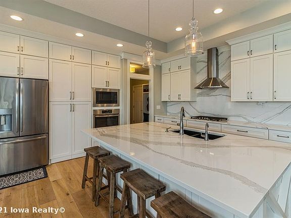 Award winning walkout ranch plan originally built by Neighborhood Builders. This thoughtfully designed 5-bedroom ranch home has a very open kitchen hidden pantry, dining quad doors and great room with tons of cabinets and storage Large partially covered deck has views of a nearby pond and large fenced in back yard. The Lower level has 2 bedrooms, full bath, and large family and game room area bar. Great room Power window coverings stay with the home.