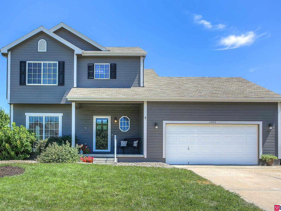 Papillion West facing move-in ready walkout 2-story located in Walnut Creek Hills with 4bdrm, 4bth, open floor plan located close to park/walking trails. You'll enjoy the floor plan that opens from the eat-in kitchen with ss appliances, pantry, beautiful cabinets to the family room with fireplace. Private deck off the kitchen. The spacious primary bedroom has double sinks, shower and walk-in closet. The laundry is also on the second floor. Enjoy the basement with wet bar, game area, sit down bar space. A large bedroom in the basement could be an office. The flex area/recreation area has hidden storage with a safe. What a wonderful big back yard with patio space galore. Pool will be removed prior to closing. Elementary School, Shadow Lake Shopping, & Walnut Creek Recreation Lake within walking distance. Offutt AFB, West & downtown Omaha within 20 minutes.