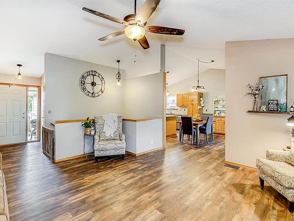 Welcome Home! This 4 bedroom, 3 bathroom home is ready for you! When you enter the home, you will notice the newer LUXURY VINYL TILE THROUGHOUT THE MAIN FLOOR. The living area sports a wood burning fireplace with gas starter for those chilly nights. The living room flows into the dining area and updated kitchen. The kitchen has stainless steel appliances and Corian countertops. The entire interior also has NEW PAINT. The master bedroom is spacious with an attached bath and walk-in closet. The master bath has two sinks and a bath/tub combo. The main floor also has two additional bedrooms and a hall bathroom for kids and guests. The basement has NEW CARPET in the family room, hallway and 4th bedroom. The family room as another GAS FIREPLACE. The basement also has a 4th bedroom, full bathroom and bonus room, perfect for an office or kid's play room. In the fully fenced backyard you will find a covered deck to spend time with family and friends as well as a storage shed for mowers and additional storage. The swing set stays with the home. Don't miss your chance to own an updated home in Goddard school district.