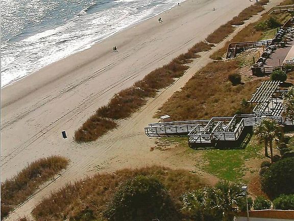 Like new, corner unit, 1-bedroom, 1-bath ocean front condo in the Ocean Park Resort located at 1905 South Ocean Blvd. It is very unusual to find 1-bedroom corner units along the ocean in Myrtle Beach, especailly with floor to ceiling windows in the living room and master bedroom. The resort is located 1 mile from Springmaid Pier and 1.5 miles from the 2nd Ave. Pier. Hurl Rocks Park is located next door to the south. We will be selling this 10th floor end unit unfurnished, but the stove, refrig, dish washer, and washer/dryer will be included in the sale. This oceanfront end unit provides unobstructed and incredible views of the ocean, sunrises and the city. There are 4 motels situated to the north of Ocean Park that are up to 6 stories high. So the best views down the beach and of the city are found from units located between floors 7 to 12. The resort has on-site maintenance and security. There are heated indoor and outdoor pools & Jacuzzis, as well as a fully equipped fitness center. This single owner unit was rented from 1986-2006. Recently, the entire unit was completely refurbished, including bedroom, bathroom (2-person walk-in shower), kitchen, living room. laundry. closets, carpet and tile. Crown moulding was installed throughout and new wall air conditioners purchased in 2014. Can provide very specific cash flow information for 1986-2006 for those interested in renting unit out. Because of views and quality of unit furnishings, some years had 330+ days of rentals. The resort provides Wi-Fi, replaced their two elevators in 2010 and the homeowners association has maintained a very good capital reserve and provides a high value resort appearance at all times. There is a two-story on-site garage as well as overflow and RV/trailer/boat parking across the street. Actual annual SC taxes: $1275 (since we are non-residents). Would be less if are SC resident.
