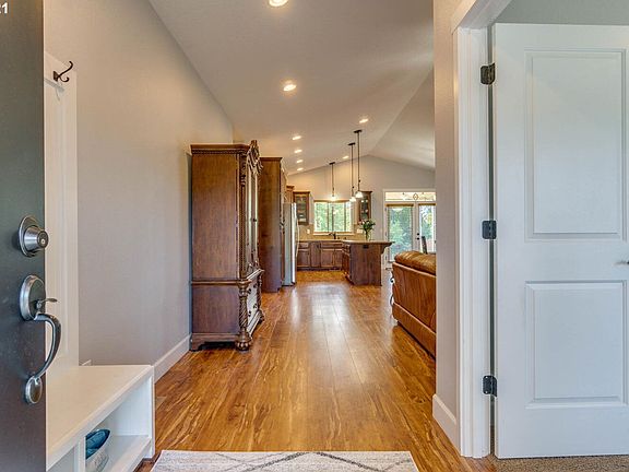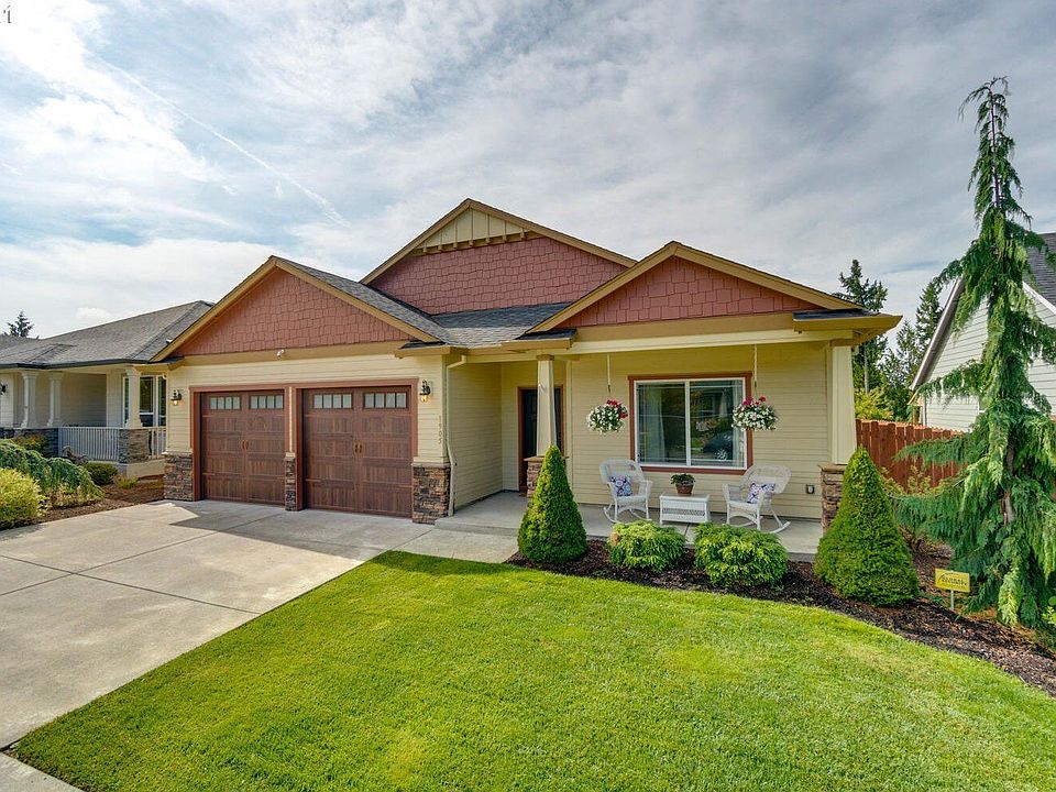 One level living at its finest! This 3BR/2Bath home boasts hardwood floors, vaulted ceilings, and a big kitchen with island. Fresh interior and exterior paint, Ring doorbell system and water treatment system are just a few upgrades in this immaculate Ridgefield home. Pick fruit from your trees and enjoy the covered patio while admiring the greenspace. This stunning backyard has additional entertaining space with lower patio and firepit. In a great location, it's the perfect place for any buyer.