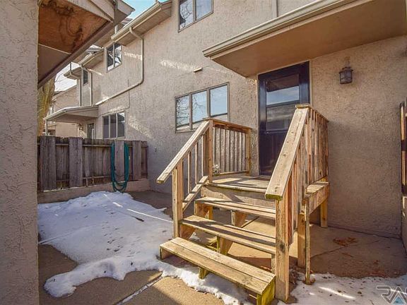 Easy to live in 2-story townhome with 2-bedrooms and 3-baths! This gem is conveniently located in central/east Sioux Falls. Warm laminate floors and a working wood fireplace in the main floor living room to take the chill out of the air. A sliding door to the patio and back yard for grilling in the spring, summer and fall lets in lots of light. The master bedroom has a walk-in double closet and an oversized single closet, roomy enough for a king size bed. The upper level is completed with another bedroom and full bath. The 2nd bedroom faces east for beautiful morning sunshine and is currently a guest room and office. The basement family room is carpeted and the 3/4 bath is large enough to add a tub! The laundry room has lots of storage (as does the rest of the home). The HOA fee includes Basic Cable, Trash, Mowing, Snow Removal, Exterior Insurance & Maintenance for $160 monthly.
