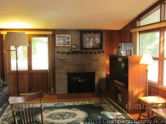 Solidly built Mid Century Redwood Ranch. This has solid hardwood floors throughout the main floor, Stone fireplace in the living room and a stone fireplace in the basement family room. Wall of windows to brighten the living room and dining area, cathedral ceiling in living room, dining and kitchen as well as the bedrooms. Skylight in the kitchen. Basement has a kitchenette. Enclosed back porch.Roof replaced in 2006. This qualifies for the Urbana Dream Down payment program for qualified buyers up to $10,000 for down payment and closing costs.