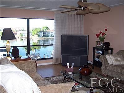 This is a second floor condo which sits above the first floor garages. Extremely well-kept and updated direct access condo with a deeded boat slip and a 13000# boat lift and a one car garage under $175,000! Truly MOVE-IN condition! TWO INTERSECTING CANAL VIEWS! Spectacular kitchen and perfect for entertaining! Three sets of sliders from the den, large master bedroom and living room. Add a full laundry room, two updated bathrooms and a spare bedroom and this condo is complete. The tranquil tropical landscaping and grounds are maintained to the fullest. Fishing pier, community pool, full reserves - the list goes on and on! Wonderful area to walk to Jaycee Park and for riding bikes! 55+ young community! Condos sit above the garages. There are 10 steps get to the condo. Owners will look at all reasonable offers!