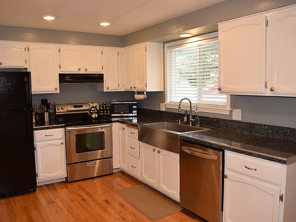 Relax on the covered patio of this 1-level home in the quiet Sandalwood development of North Mount Vernon. 3 bedrooms, 1.75 bathrooms including updated kitchen with granite counter tops and stainless steel appliances, updated fireplace with black granite, fully renovated bathrooms, hardwood floors in kitchen and family room/dining area, 2-car attached garage, private fenced yard with sunny gardening space, and covered wood storage already filled for you! This house has been completely updated with all new vinyl windows and new vinyl blinds, new light fixtures, white electrical outlets, and calm wall colors. It would be a great house for a family starting out or someone looking to downsize. The home is completely move in ready and a great find! Plenty of off-street parking. $100 annual HOA dues cover upkeep for Sandalwood Community Park around the corner.